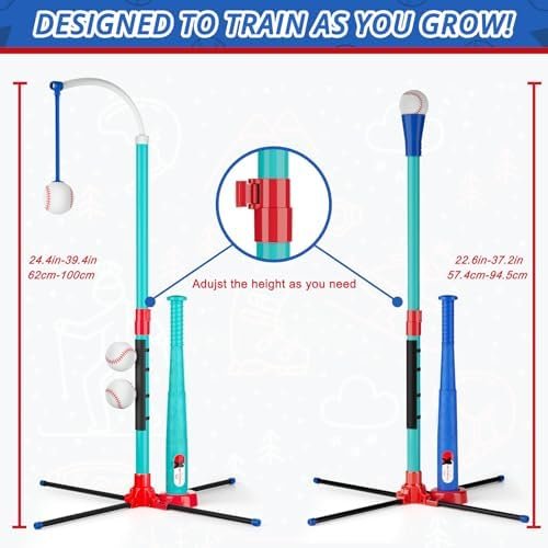 3-in-1 Baseball Set Kids Sports Toy Hanging Batting Tee + Stand Set for Toddlers & Youth Adjustable Height with Auto Ball Launcher 6 balls 2 Bats Outdoor&Indoor Toys Birthday Gifts for 3-12 years old $ 31