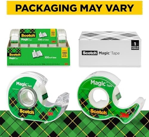 Scotch Magic Tape, Invisible, Home Office Supplies and Back to School Supplies for College and Classrooms, 6 Rolls with 6 Dispensers