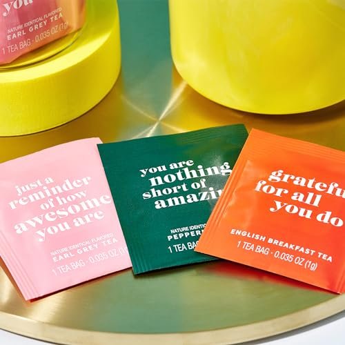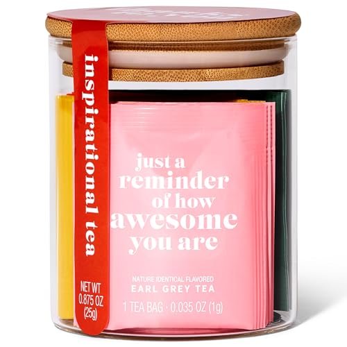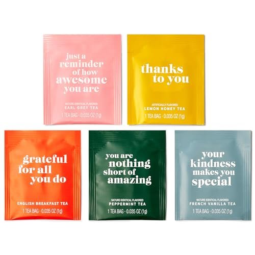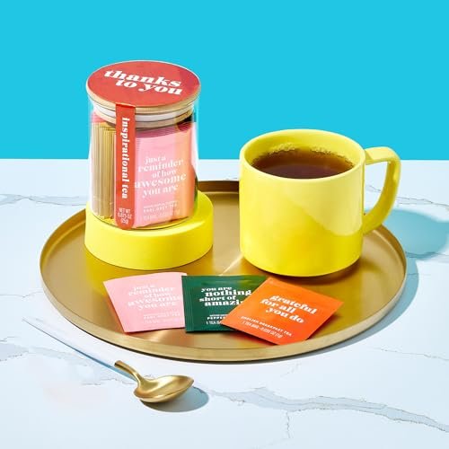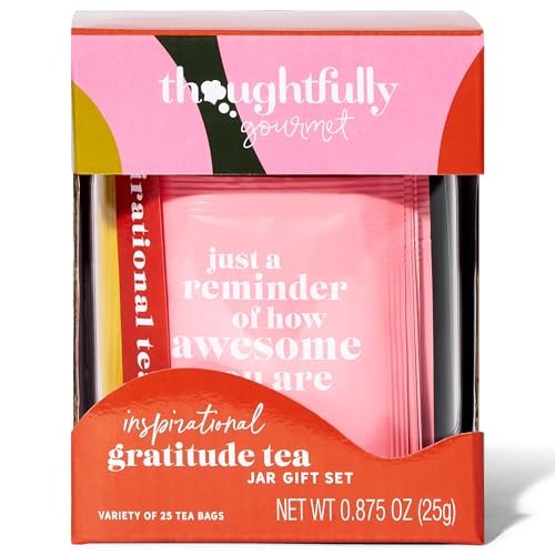 Thoughtfully Gourmet, Inspirational Thank You Tea Gift Set, Includes Glass Storage Jar and 5 Flavors of Tea with Gratitude Quotes, Set of 25